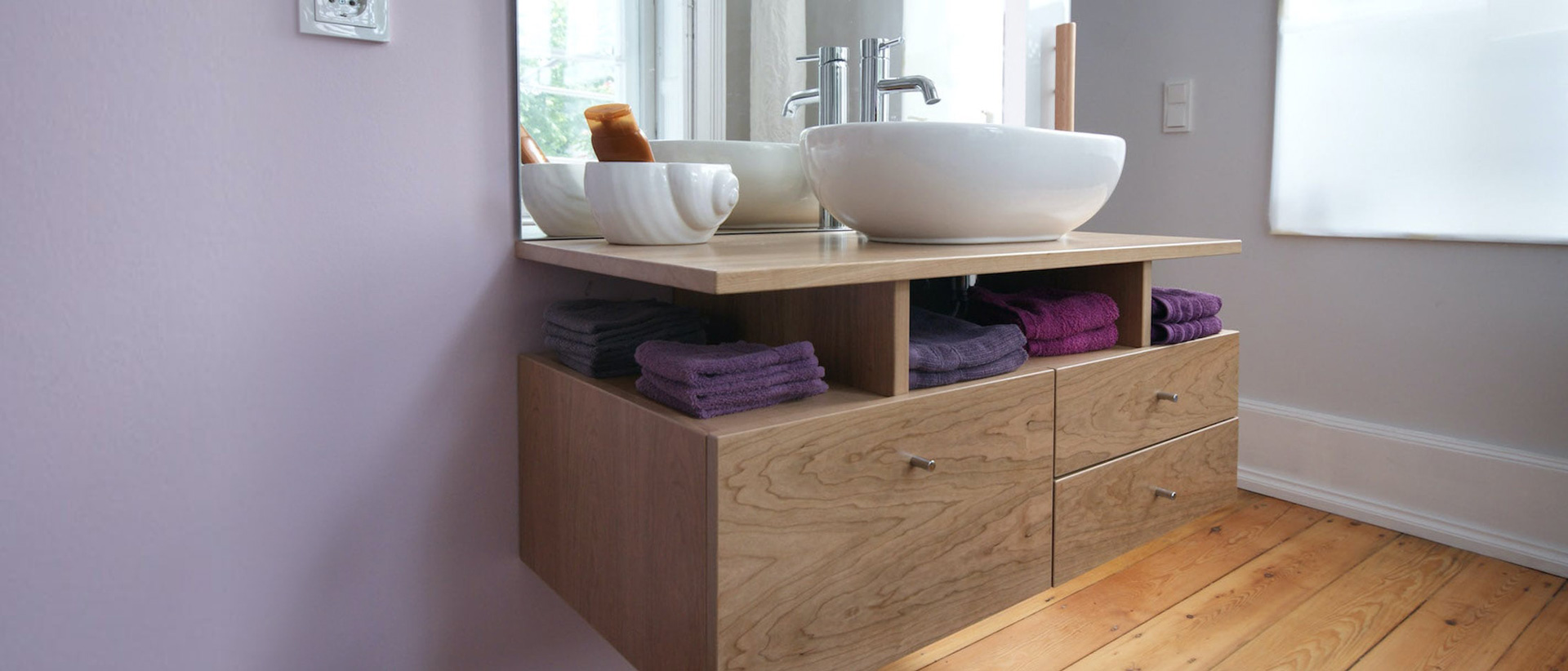 Sie wählen zwischen Massivholz und furnierten Flächen in vielen verschiedenen Holzarten. Das Holz kombinieren wir auf Wunsch mit Glas, Metall, Möbel-Linoleum und natürlich Licht. Damit schaffen wir Akzente für Möbel mit zeitloser Eleganz.